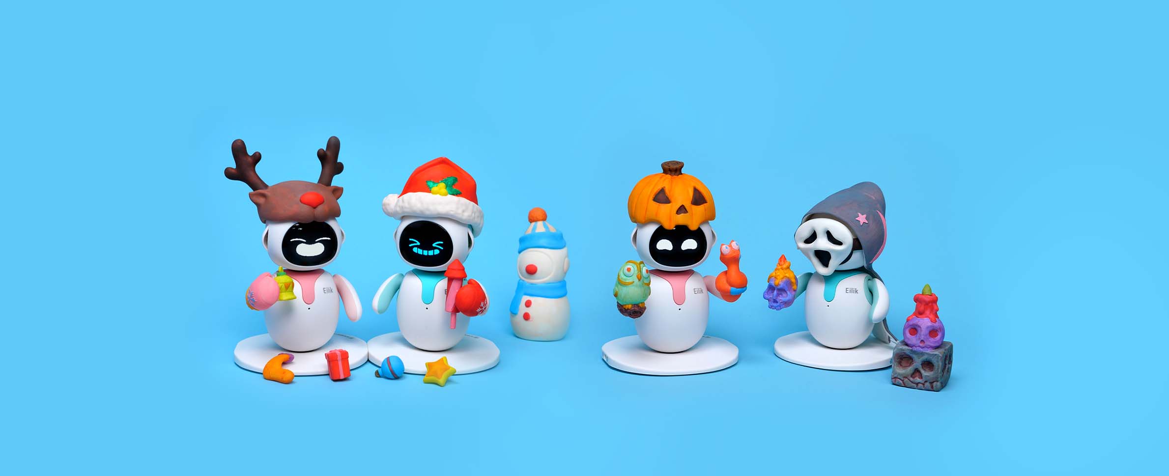 Choose between the spooky charm of Halloween or the merry vibes of Christmas, enabling Eilik to experience different wonders.